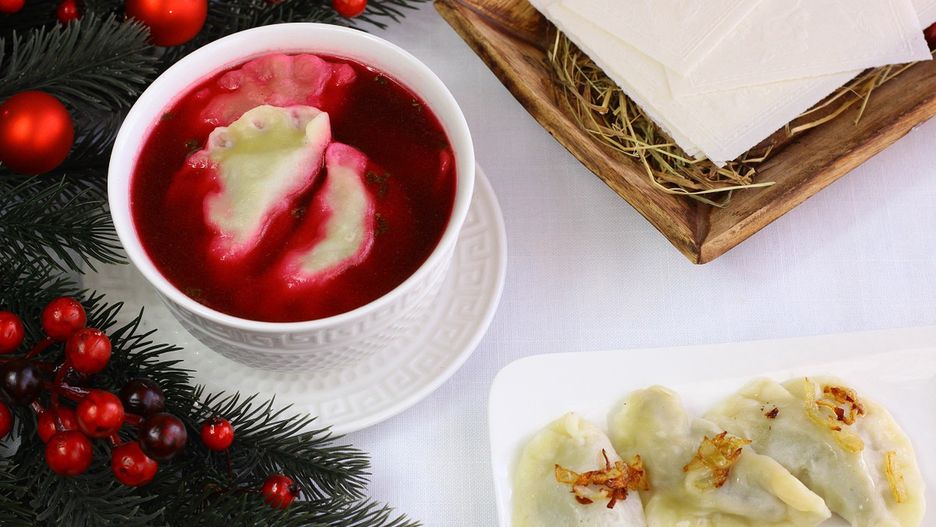 - Barszcz - najczęściej z uszkami lub kluskami. To obowiązkowa pozycja na wigilijnym stole.