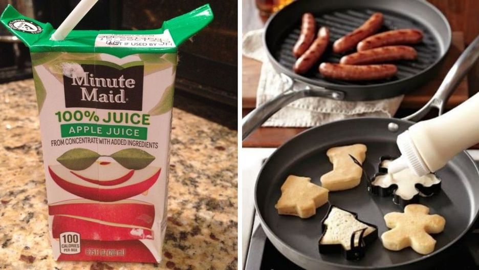 #9 Aby maluch nie ścisnął pudełka z sokiem, nadaj mu „skrzydełka”, odciągając języczki po bokach.