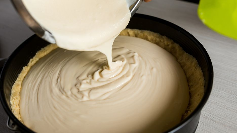 - Masę serową wylej teraz na zastygnięty już spód z lodówki. Wstaw do rozgrzanego do 180 stopni piekarnika i piecz około 45 minut. Studź w wyłączonym urządzeniu.