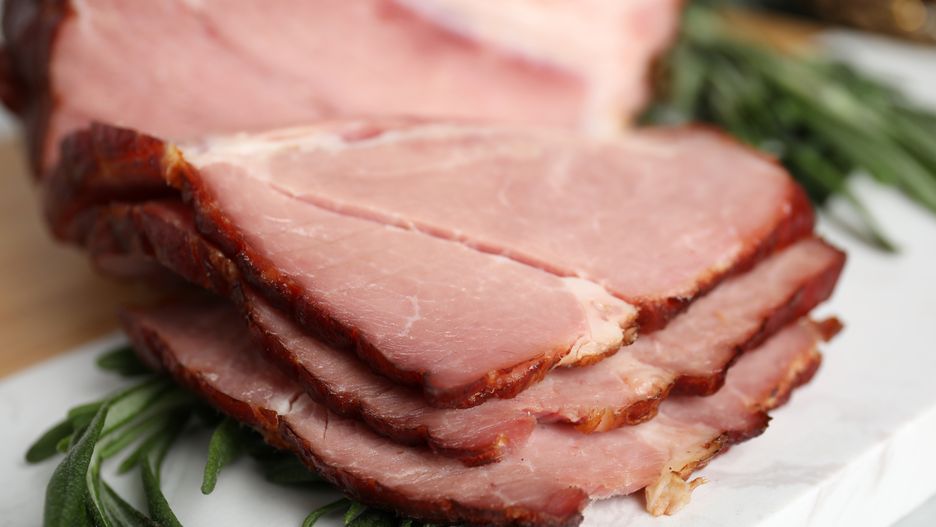 - Powstałą pastą dokładnie wysmaruj szynkę.