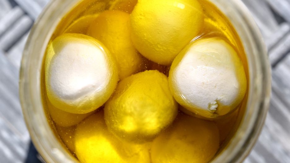 - Po tym czasie ostrożnie przełóż kulki do słoika i zalej oliwą tak, by całkowicie przykryła ser.