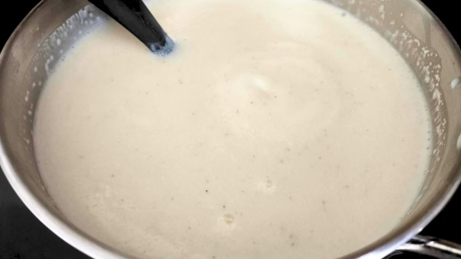 - W garnku zagotuj mleko wraz z cukrem i solą.