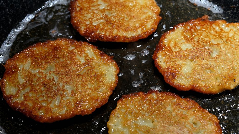 Placki ziemniaczane z żółtym serem wychodzą chrupiące