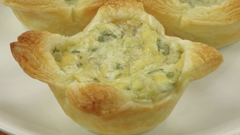 Poniżej zobaczysz instrukcję na wykonanie pysznych babeczek z ciasta francuskiego z nadzieniem serowo-szpinakowym i karczochami.