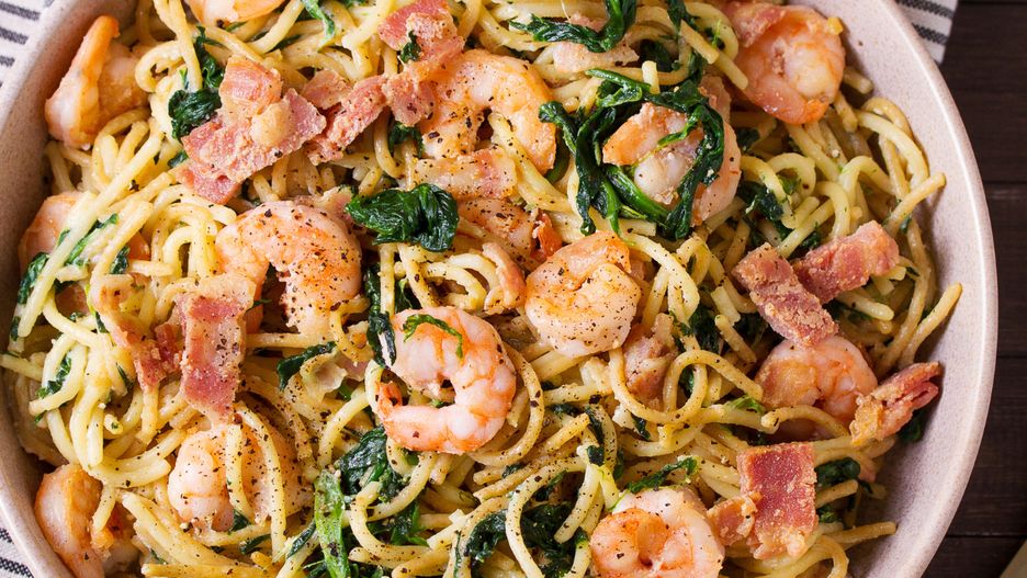 Ponadto dobrze sprawdza się tu długi makaron, bo łatwo łączy się z oliwą, czosnkiem i sokami, które puszczają krewetki. Bardzo ważny jest też boczek usmażony na chrupko, gdyż to on wnosi słony akcent i kontrastuje z delikatnością owoców morza.