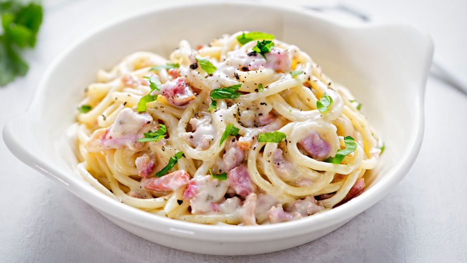Sekret tkwi w połączeniu makaronu z jajkami i serem, które spajają całość i dodają kremowej konsystencji. Dzięki temu danie jest też bardziej sycące i pożywne. Do tego w środku ląduje szynka. Tutaj już pełna dowolność, co kto ma w lodówce i co lubi. Możesz sięgnąć także po kiełbasę lub boczek, ale pokrój i podsmaż je wcześniej. Świetnie sprawdzi się tutaj makaron typu nitki, ale możesz sięgnąć również po inny kształt. Zero marnowania jedzenia, sama przyjemność z jedzenia - ten przepis nie ma wad.