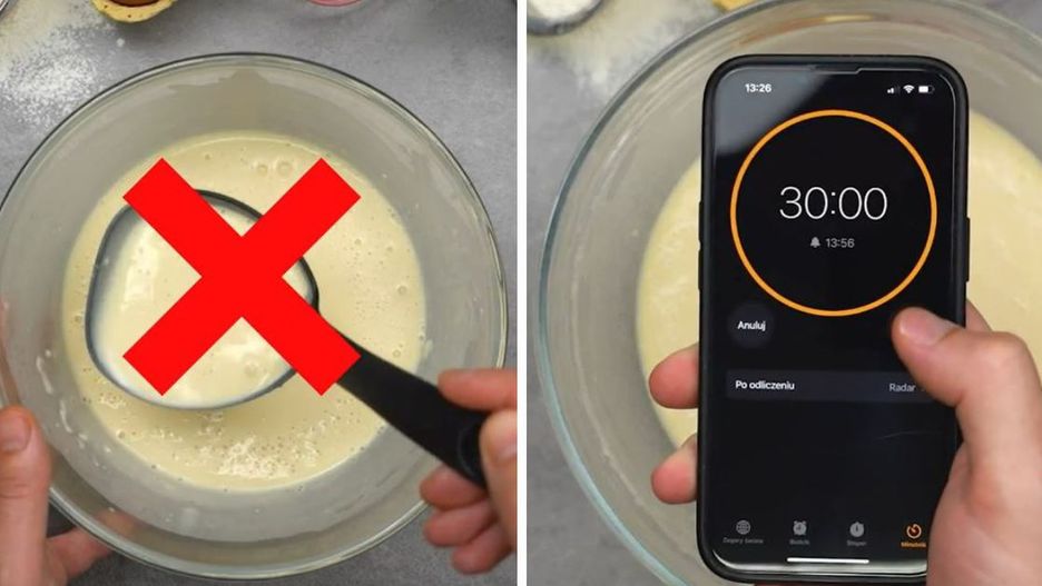 Zarówno w przypadku ciast, jak i naleśników odpowiednia kolejność dodawania składników ma znaczenie. Nie dodawaj wszystkiego od razu. Zacznij od wymieszania jajek z mlekiem, wodą gazowaną, masłem oraz szczyptą soli. Dopiero do takiej masy dodaj mąkę, wsypując ją partiami. Dzięki temu ciasto nie będzie miało grudek mąki.