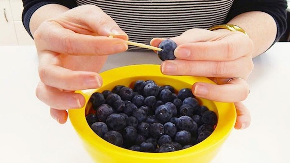 Nabiła borówki na wykałaczki, zanurzyła w jogurcie i zamroziła. Efekt - zdrowa i pyszna przekąska!