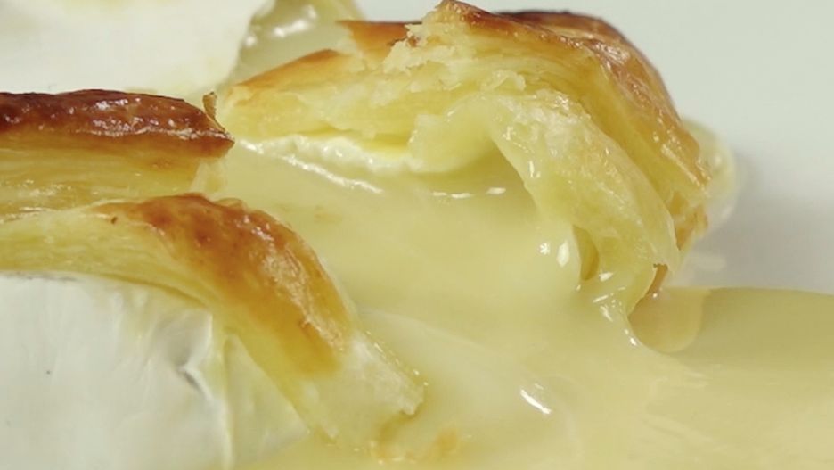 Rozpływający się brie w cieście francuskim z oliwkami i pepperoni