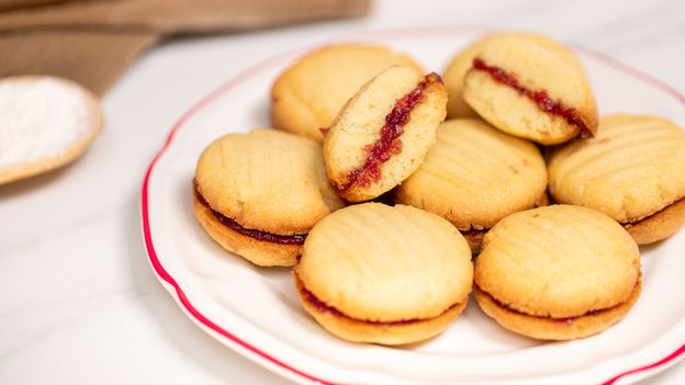Te ciasteczka to najlepszy dowód na to, że czasami wystarczy naprawdę niewiele, aby wyczarować w kuchni coś wyjątkowego. Tym razem połączyliśmy zaledwie 4 składniki, które stały się bazą kruchych ciasteczek budyniowych. Po przełożeniu ich różaną marmoladą idealny deser do popołudniowej kawy jest gotowy. Nasz przepis dnia pokazujemy dokładnie w wideo. Lista składników czeka poniżej.
