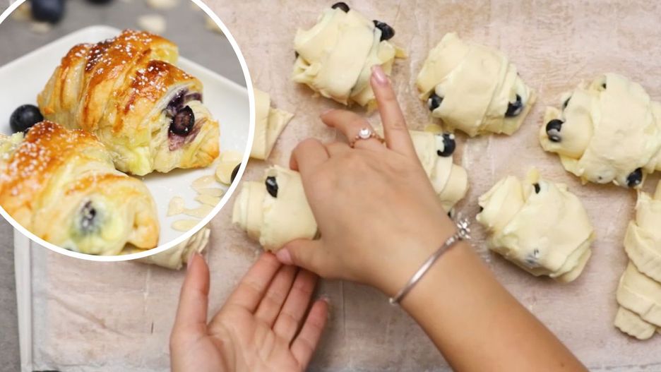 Budyniowe rogaliki z borówkami. Przepis na proste rogaliki z ciasta francuskiego