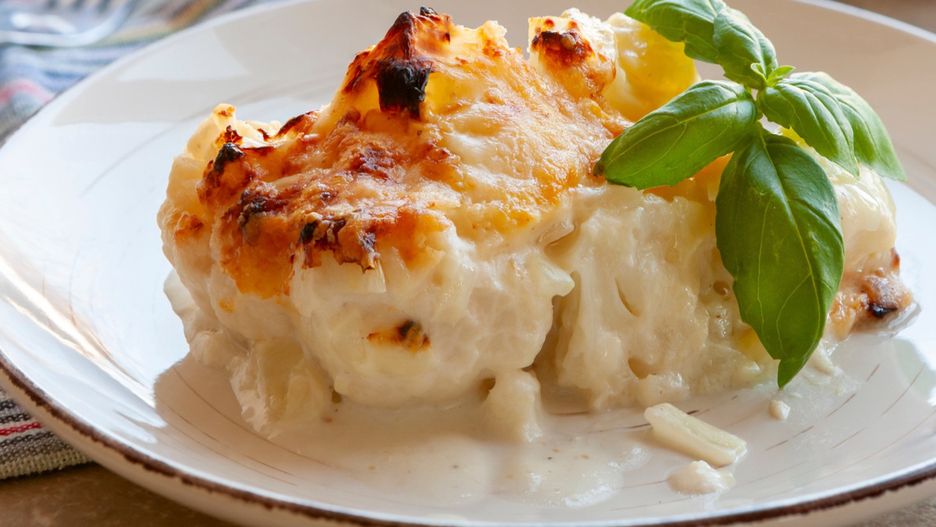 - Kalafior zapiekany pod beszamelem możesz podawać z ziemniakami, ryżem lub makaronem.