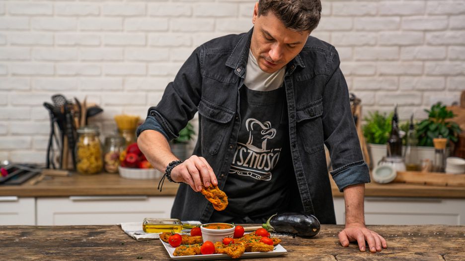 Chociaż wśród przekąsek najczęściej królują cebulowe krążki, to ten bakłażan deklasuje je już od pierwszego kęsa. Kiedy zrobiłam je po raz pierwszy, nie spodziewałam się, że zrobią aż taką furorę. Prosta panierka z mąki, jajek oraz bułki tartej pięknie okrywa plasterki bakłażana. Całość świetnie ogrywają proste przyprawy: czosnek, papryka i kmin rzymski. Możesz zaserwować je nie tylko jako przekąskę, ale również zamiennik mięsa do obiadu. Nie znam smaczniejszego przepisu na bakłażan, sięgają po niego nawet niejadki.