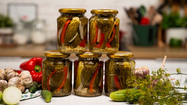 Do tego grona zaliczyć można również domowe przetwory z ogórkami po kartusku na czele. Co je wyróżnia? Do słoika z ogórkami oprócz tradycyjnego kopru i czosnku, trafia też świeża cebula oraz czerwona papryka. Z takimi dodatkami ogórki w marynacie smakują jeszcze lepiej, przyjemnie chrupią, a sam słoik z dodatkami pięknie się prezentuje.
