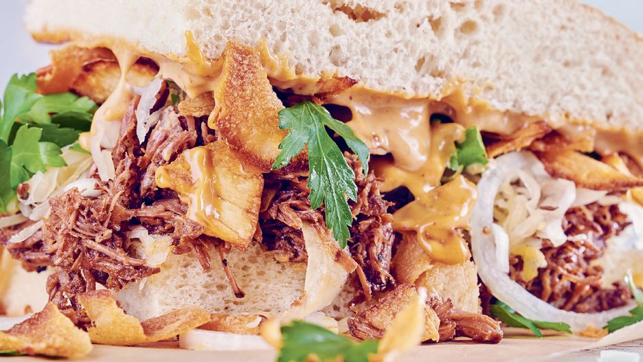 Chrupiące pieczywo, wyrazisty sos i solidna porcja mięciutkiego mięsa. Kanapka jak marzenie