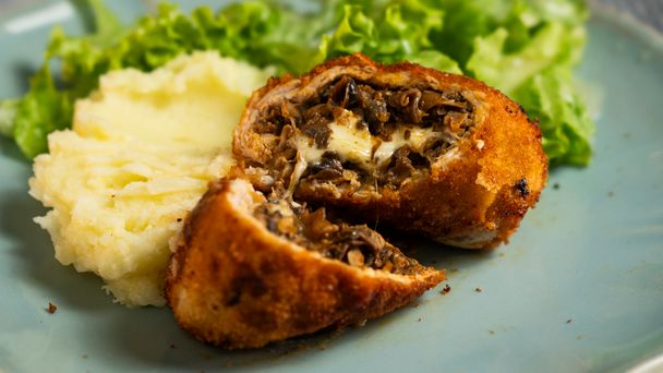 Masz dość robienia w kółko mielonych i kotletów schabowych? Potrzebujesz jakiejś odmiany w kuchni? Postaw na chrupiące roladki wypełnione po brzegi farszem na bazie brązowych pieczarek i mozzarelli. Do schabowych zawijasów możesz dodawać przeróżne dodatki, dzięki czemu za każdym razem będą miłym zaskoczeniem dla bliskich. Lista składników czeka poniżej. Nie zapomnij też obejrzeć naszego wideo, gdzie krok po kroku pokazujemy, jak zrobić roladki schabowe.