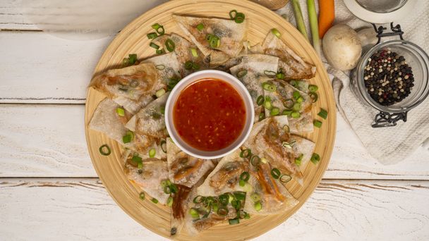 Szybka przekąska na bazie papieru ryżowego z dodatkiem szynki drobiowej, marchewki, szczypiorku i orzechów włoskich ma w sobie to "coś". Chrupiąca struktura i ciekawa mieszanka smaków zapada w pamięci na bardzo długo. Dokładną instrukcję, jak zrobić oryginalne trójkąciki, znajdziesz w wideo. Lista składników czeka poniżej.