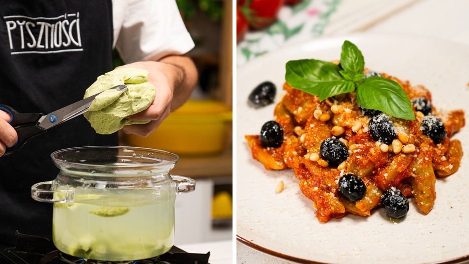 Te kluski to sprawa bardzo prosta — wystarczą zaledwie trzy proste składniki. Nie ma w nich jajek ani mleka, więc świetnie sprawdzą się również u osób, które ograniczają produkty odzwierzęce. Efektowne cięcie nożyczkami jest bardzo satysfakcjonujące, ale to efekt końcowy sprawia, że ma się ochotę na więcej. Skąpane w pysznym sosie kluseczki to strzał w dziesiątkę.