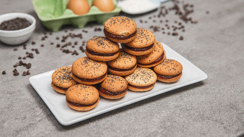Powstałą masę przełóż do rękawa cukierniczego. Wyciśnij na blaszkę wyłożoną papierem do pieczenia niewielkie krążki tej samej wielkości i posyp czarnym makiem. Zachowaj między nimi odstępy. Wstaw ciastka do piekarnika rozgrzanego do 180 stopni Celsjusza i piecz przez 10 minut.