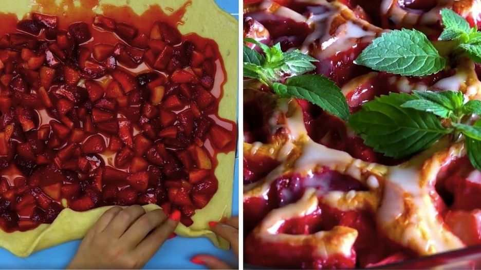 Ciasto drożdżowe z truskawkami w formie roladek
