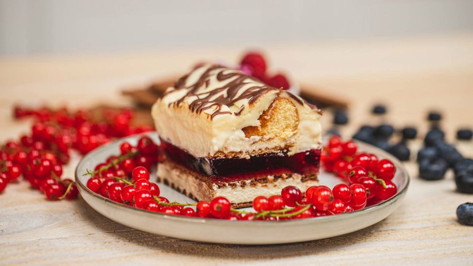 Ciasto góra lodowa w nowym, owocowym wydaniu. Imponujący deser na bazie herbatników