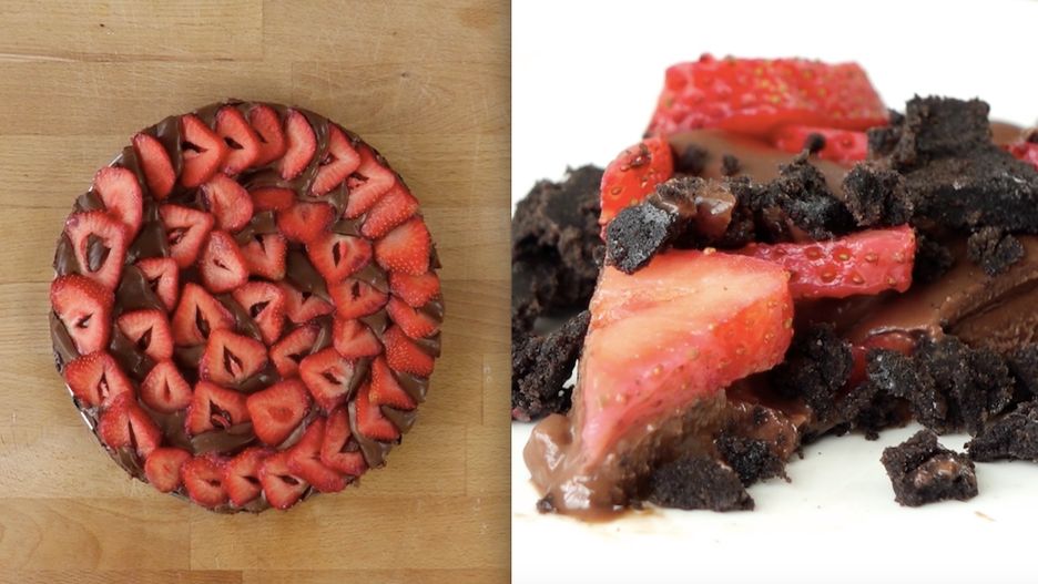 Przepyszne ciasto bez pieczenia z ciasteczkami Oreo, czekoladą i truskawkami.