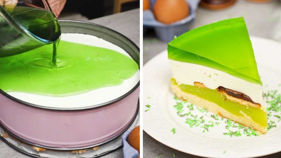 Kolorowe ciasto z zielonym sokiem