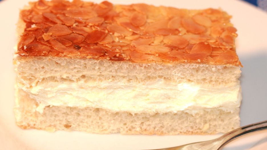 Samo ciasto drożdżowe jest zarówno puszyste, jak i lekko wilgotne, dzięki czemu nie staje w gardle, czego zwykle obawiamy się po tego typu wypiekach. Krem budyniowy to połączenie tradycyjnego budyniu z absolutnie nieziemską bitą śmietaną, której smak i konsystencja zawsze dodaje kilka punktów deserom. Ale najważniejsza jest tutaj chrupiąca "skórka", czyli polewa z migdałów. Bez tego deser ten nie miałby szans na przebicie. Inspiracja dla stworzenia tego ciasta był niemiecki deser Bienenstich.