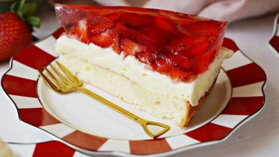 Biszkopt z truskawkami, kremem budyniowym i galaretką to jedno z tych ciast, których nie może zabraknąć na stole wiosną i wczesnym latem. Przepis jest bardzo prosty. Ciacho wygląda fantastycznie i na jednym kawałku nie można poprzestać.