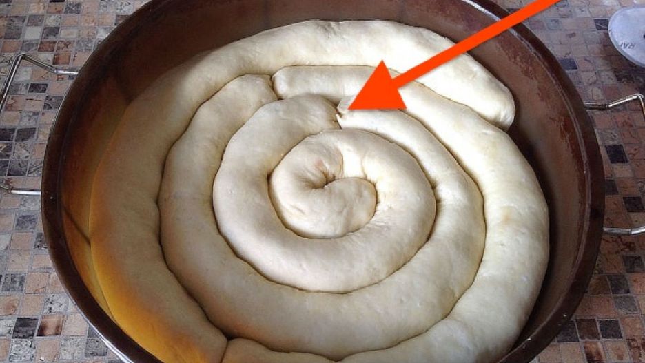 Włóż 'kiełbaski' do natłuszczonej tortownicy (26 cm). Wsadź ją do piekarnika nagrzanego do 180°C na około 30-40 minut.