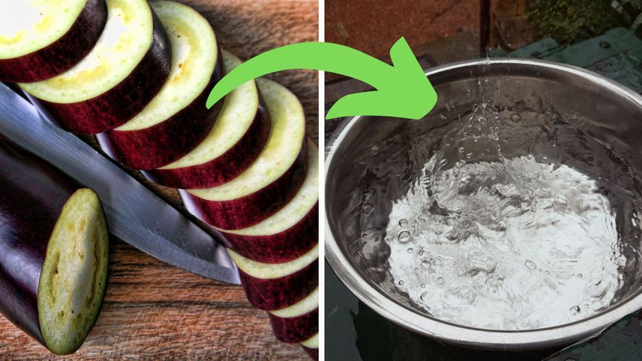 Jest to prosty sposób na usunięcie goryczy z bakłażana. W dużej misce zmieszaj jeden litr zimnej wody z jedną łyżką soli. Następnie wrzuć do płynu pokrojone warzywa. Całość przykryj talerzem - możesz postawić na nim coś ciężkiego, aby przyciskał warzywa do dna. W ten sposób bakłażan będzie cały zanurzony w wodzie. Następnie odstaw wszystko na około jedną godzinę. Po tym czasie opłucz warzywa pod bieżącą wodą i później je osusz.