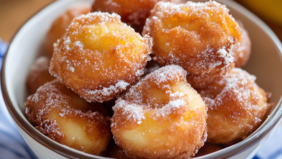 - Gotowe pączusie możesz dodatkowo obtoczyć w cukrze pudrze z odrobiną cynamonu, aby podkreślić ich smak.