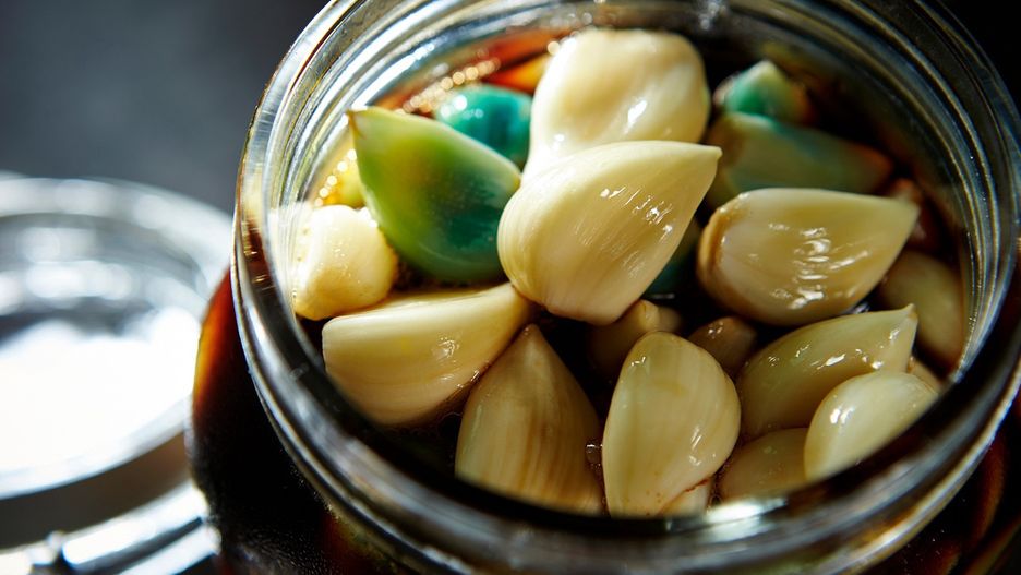 Nie jest to oznaka zepsucia ani pleśni – wręcz przeciwnie. To naturalny sygnał, że czosnek poprawnie kiszony wchłania kwas mlekowy. W niektórych krajach i regionach taki kolor czosnku uznaje się za dekoracyjny dodatek do potraw – zarówno samodzielnie, jak i w połączeniu z innymi składnikami.