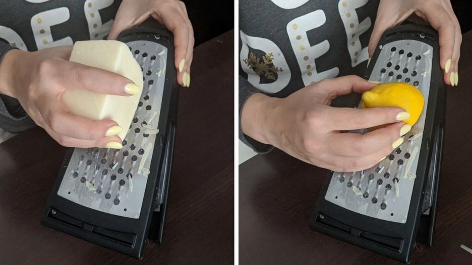 Po starciu sera nie musisz męczyć się z czyszczeniem zabrudzonej tarki. Do tego triku wystarczy Ci połówka cytryny. Po zakończonym czyszczeniu, przemyj tarkę pod ciepłą wodą. Będzie wyglądać jak nowa!