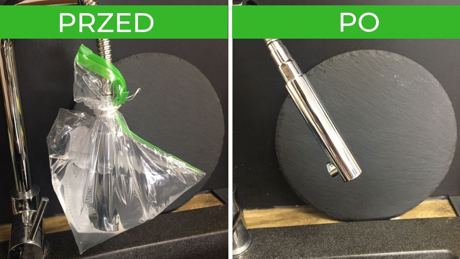Na całą noc załóż torbę z suwakiem na głowicę kuchennego kranu. Rano będzie wyglądała jak nowa!