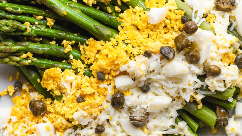Kluczowym składnikiem mimozy są jajka ugotowane na twardo, które po posiekaniu na drobno wyglądają jak kwiaty mimozy na śniegu. Często pojawiają się w kompozycji z rybą, na przykład tuńczykiem, łososiem lub wędzoną makrelą. Przepis na szparagi w tej wersji powstał z inspiracji kuchnią francuską – żółtko tym razem nie pojawia się na majonezie niczym na śniegu, tylko na zielonych łodygach, które bardziej pasują do wiosennych świąt.
