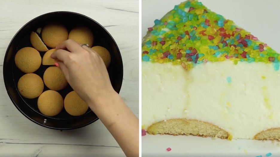 Sernik na zimno z kolorową posypką to kolejna propozycja, którą możesz połączyć z biszkoptami!