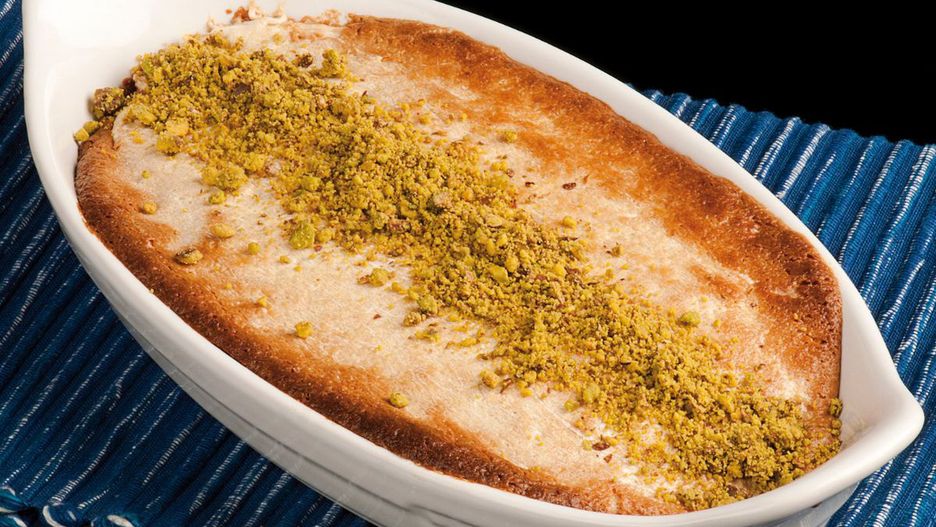 Gotowy deser ma z zewnątrz przypieczoną skórką i lekko płynne wnętrze. Z wierzchu możesz posypać ją pokruszonymi pistacjami lub innymi orzechami. Najlepiej smakuje na ciepło.