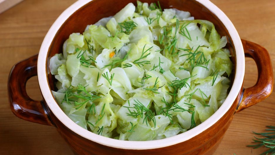 - Gotuj pod przykryciem na małym ogniu, aż kapusta będzie miękka.