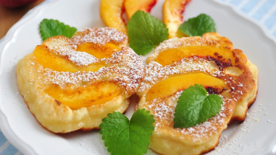 - Na każdym placuszku ułóż po kilka kawałków nektarynek. Smaż z obydwu stron na rumiany kolor.