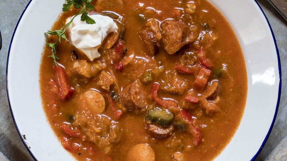 - Dodawanie składników: Drobno pokrojone pieczarki i paprykę krótko przesmaż na rozgrzanym oleju, dodaj do garnka i gotuj kolejne 10 minut. Dodaj pomidory z puszki wymieszane z koncentratem i gotuj zupę na małej mocy palnika kolejne kilkanaście minut.