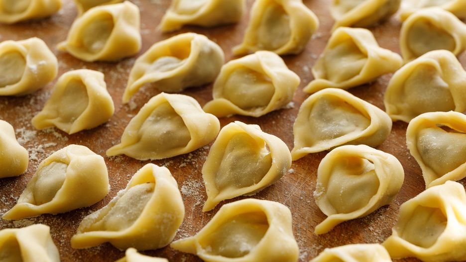 - Zaparz mąkę gorącą wodą, wymieszaj, dodaj jajko i wyrób gładkie ciasto. Przykryj i odstaw 20 minut.