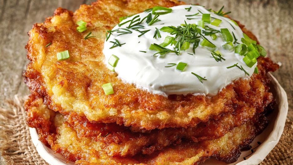 Zawarty w jogurcie kwas mlekowy zapobiega utlenianiu się skrobi, dzięki czemu masa ziemniaczana nie zrobi się sina w trakcie tarcia. Na dodatek białka obecne w jogurcie tworzą podczas smażenia specyficzną barierę na powierzchni placka. Sprawia ona, że ciasto błyskawicznie zamyka się pod wpływem wysokiej temperatury, co ogranicza wnikanie oleju do środka. W rezultacie z patelni ściągamy chrupiące placki, które nie są przesadnie tłuste i ciężkie.