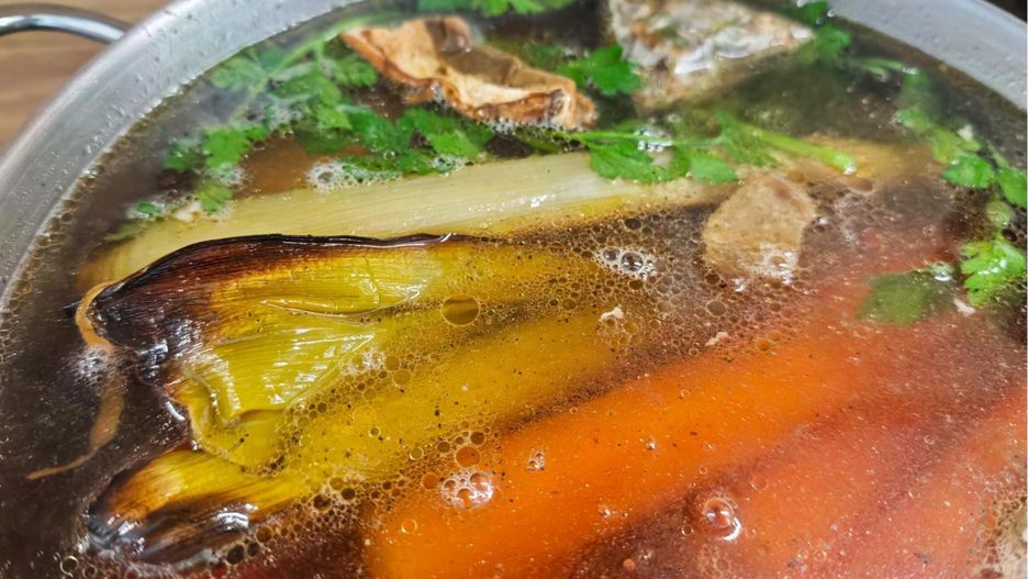 Zupa nie może wrzeć – musi "mrugać", czyli ledwo zauważalnie bulgotać. Tylko wtedy wywar pozostanie klarowny, a wszystkie aromaty z mięsa, warzyw i grzybów powoli przejdą do wody.