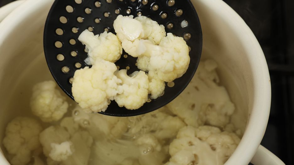 - Gotowanie kalafiora zakończ, gdy warzywo będzie miękkie.