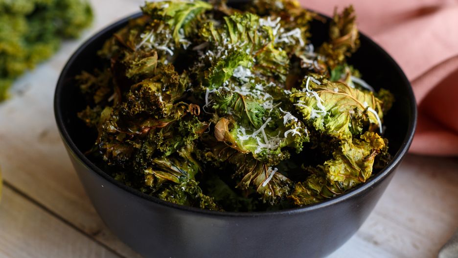 - Liście jarmużu lub sałaty dokładnie umyj i osusz. Jeśli używasz jarmużu, usuń twarde łodygi, a liście porwij na mniejsze kawałki.