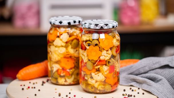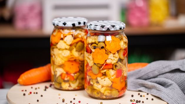 - Następnego dnia odcedź warzywa, dokładnie przepłucz je pod bieżącą wodą i osusz. Połącz z pozostałymi składnikami i przełóż do słoika. Jako ostatni element dodaj domową zalewę i zakręć słoiki. Na koniec odstaw do zamarynowania na co najmniej 3 dni.