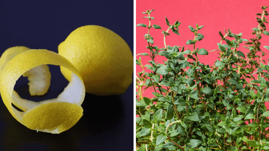 - Obierz cytryny (obrane jak najdokładniej z białych części). Skórki umieść w słoiku razem z gałązkami tymianku.