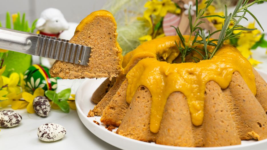 Kremowy pasztet z dodatkiem żółtego sosu na bazie suszonych moreli w formie babki wielkanocnej to prawdziwy strzał w 10!