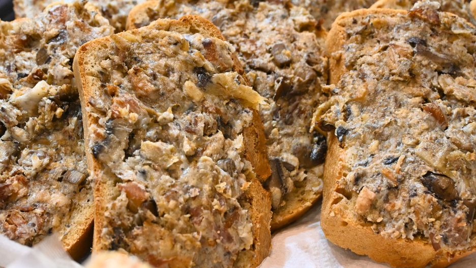 Dodatek pieczarek sprawia, że smarowidło zyskuje zupełnie nową, głęboką strukturę i staje się lżejsze w odbiorze niż wersja oparta wyłącznie na mięsie. Pieczarki świetnie chłoną aromat wytopionej słoniny, a po podsmażeniu nabierają lekkiej chrupkości, która idealnie kontrastuje z kremową bazą. To doskonała alternatywa dla osób, które szukają urozmaicenia lub chcą nieco ograniczyć ilość ciężkich skwarków w diecie, nie rezygnując przy tym z pełnego, domowego smaku.